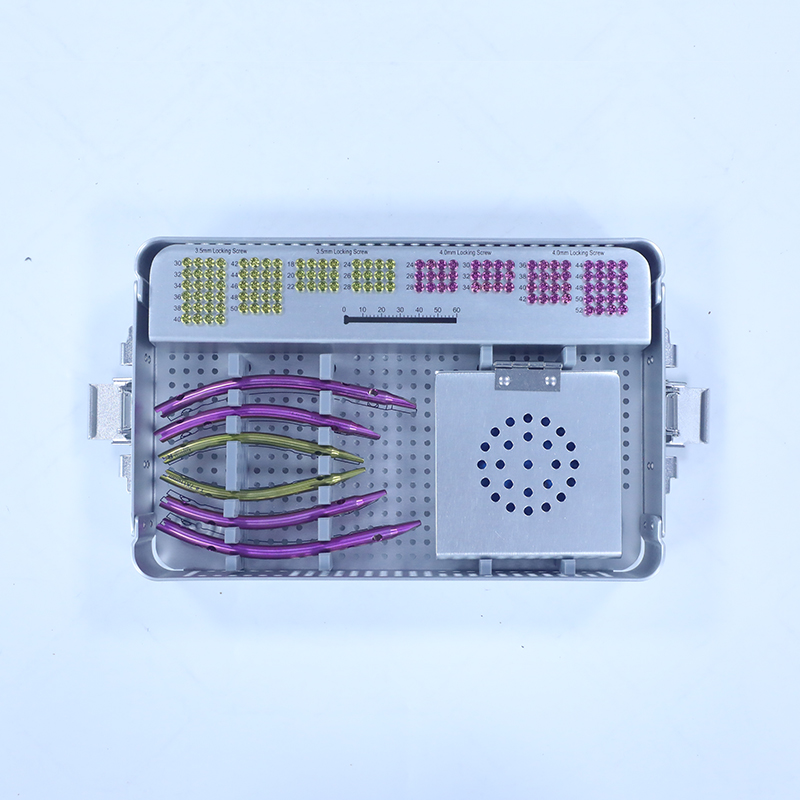 The disinfection box for the distal tibial intramedullary nail is used to store and disinfect the intramedullary nail and related surgical instruments. High-temperature and high-pressure sterilization ensures a sterile environment, and the sealed design prevents contamination. The internal classified partition facilitates the retrieval of instruments and improves surgical efficiency.