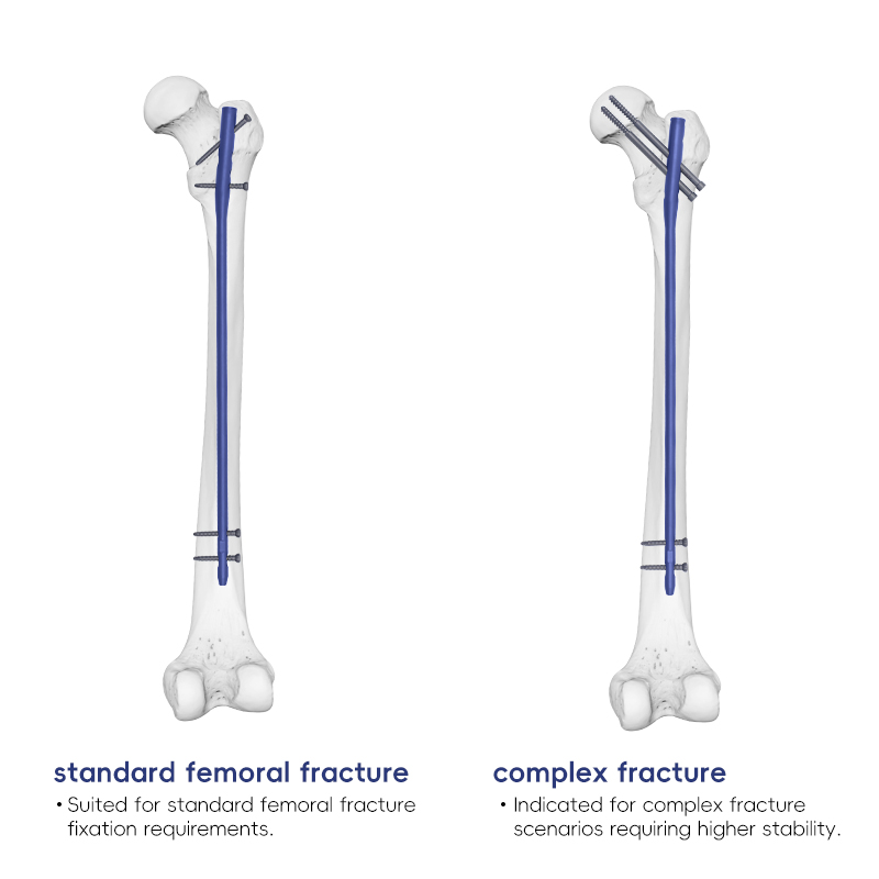 The main nail is the core component for femoral intramedullary fixation. Inserted into the femoral medullary canal, it stabilizes the fracture site and promotes fracture healing. It features multiple locking holes that work with locking screws to provide multi-plane stable fixation.