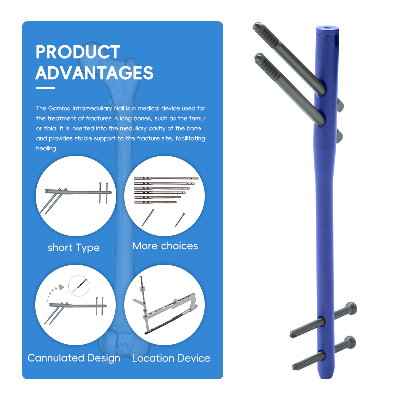 The Gamma Intramedullary Nail is a medical device used for the treatment of fractures in long bones, such as the femur or tibia. It is inserted into the medullary cavity of the bone and provides stable support to the fracture site, facilitating healing.