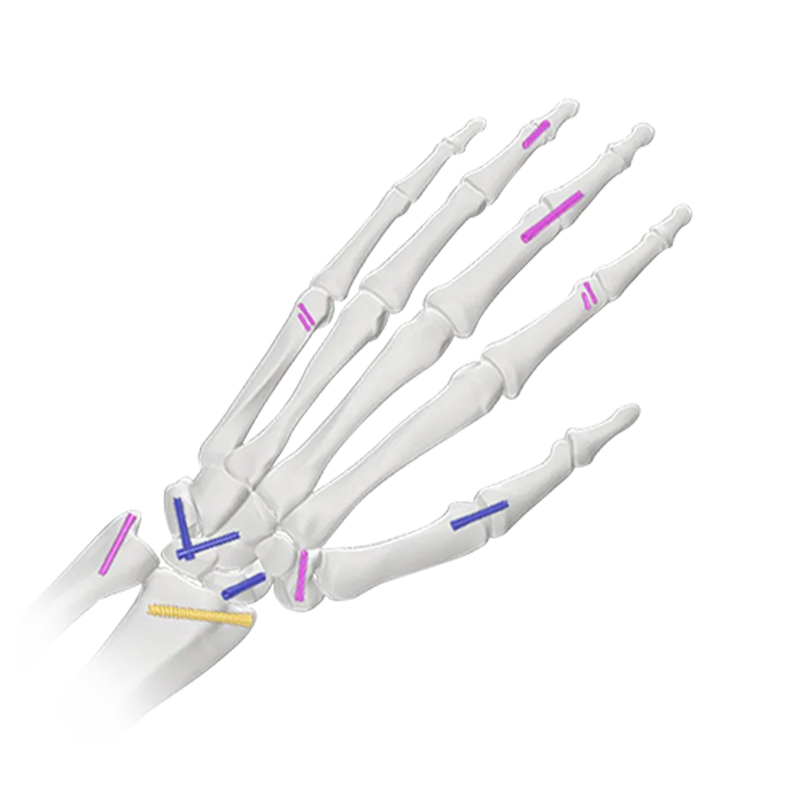 • Angular Locking Screws: Two angular locking screws at the proximal end prevent rotation and displacement of the fracture segment.