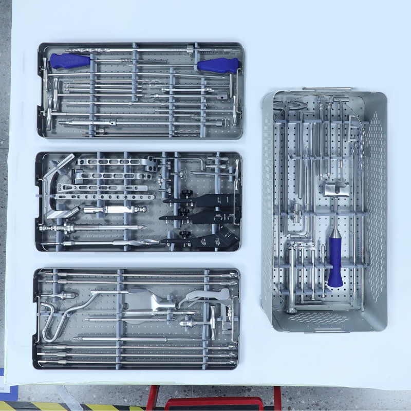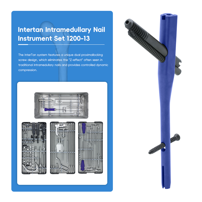The Intertan Intramedullary Nail Instrument Set includes various tools for the preparation, execution, and fixation of intramedullary nailing surgery. The tools within each box are designed for specific surgical steps, ensuring the precision and safety of the surgery.